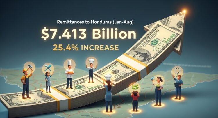 TEGUCIGALPA. Honduras ha recibido 7,413.4 millones de dólares en remesas familiares al 14 de agosto de 2025, lo que representa un aumento de 1,500.7 millones de dólares (25.4%) en comparación con los 5,912.7 millones captados en el mismo período de 2024, según el Banco Central de Honduras (BCH).