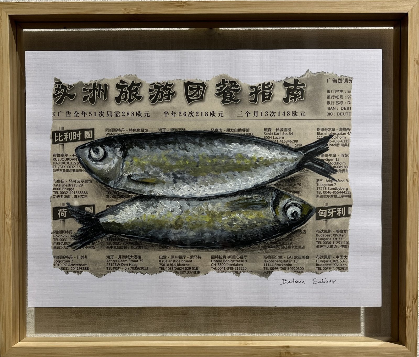 En cada obra hay uno o dos elementos protagónicos, y es pintada sobre trozos de papel de diario (algunos traídos desde algún lugar del mundo), convirtiéndolos en un lienzo que los envuelve y acoge.