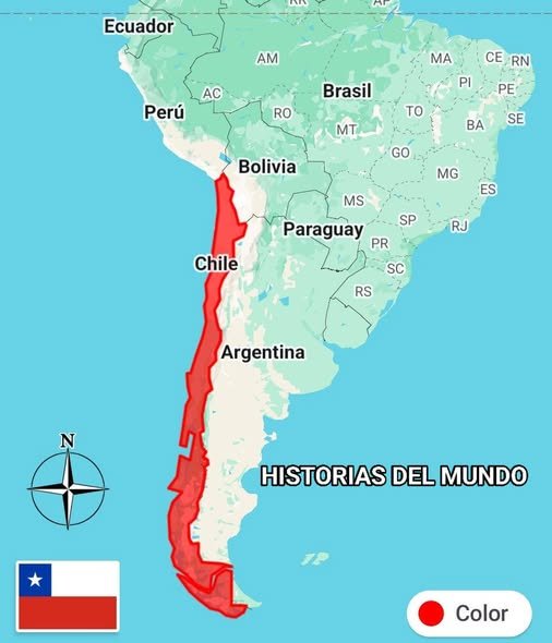 Chile es una nación ubicada en el extremo suroeste de América del Sur, famosa por su curiosa geografía: es el país más largo y angosto del mundo. Se describe a menudo como una «isla» geográfica, aislada por la imponente Cordillera de los Andes al este, el Océano Pacífico al oeste, el desierto más árido del mundo al norte y los hielos eternos al sur.