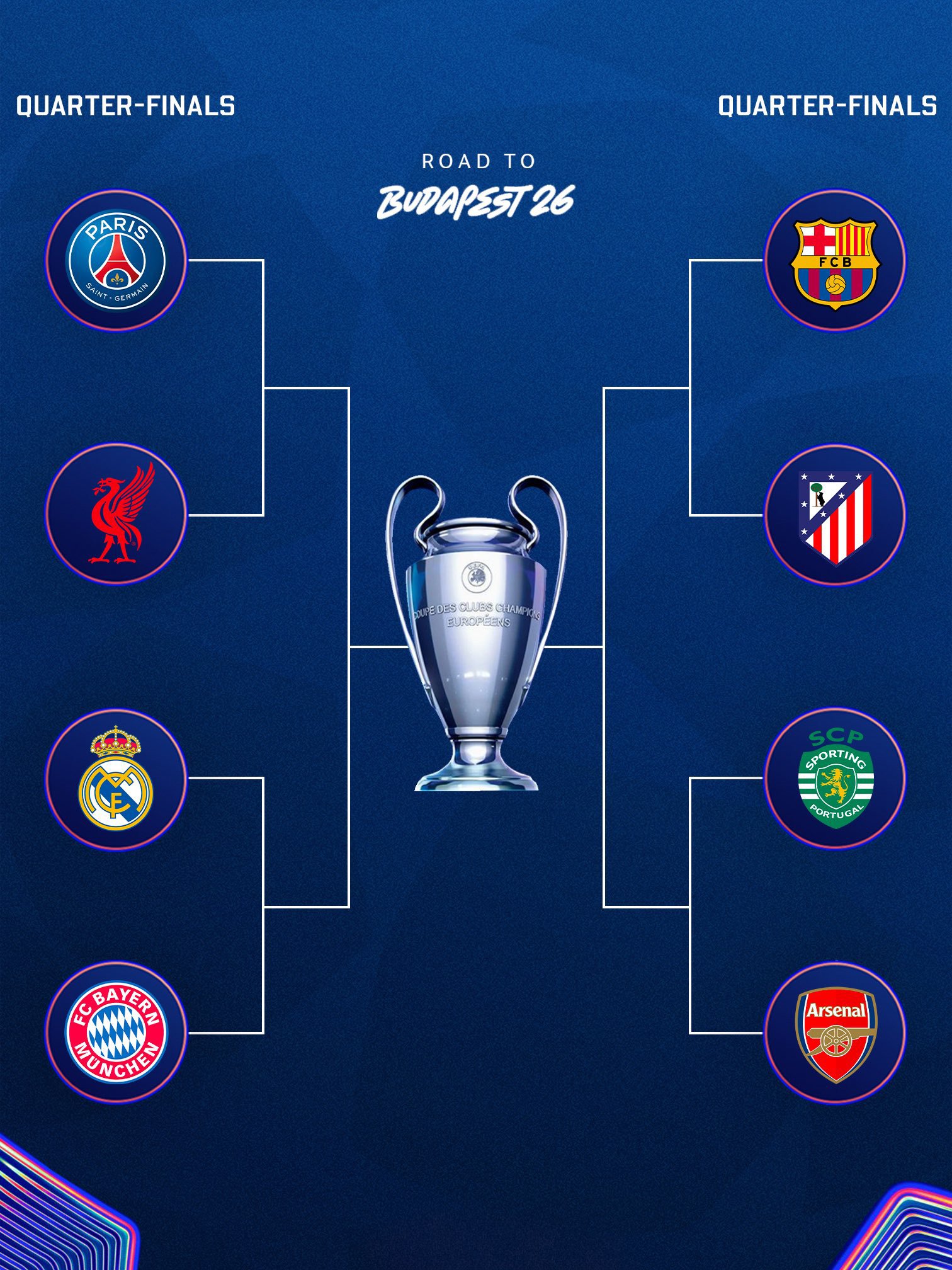 La UEFA Champions League 2025-26 entra en su fase más emocionante con unos cuartos de final que prometen espectáculo total en el camino hacia la gran final en Budapest 2026.