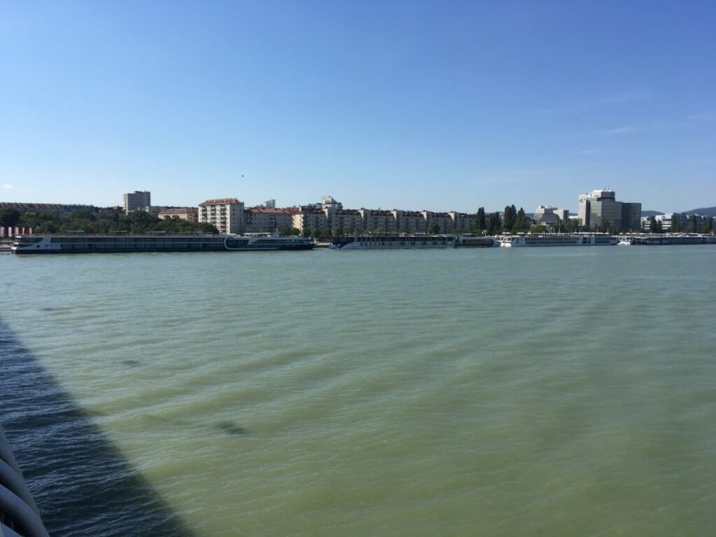 En mi viaje a Europa a mediados del año 2019, tuve la oportunidad de navegar por este río en Viena y Budapest y pude retratar en fotografías la diferencia de colores. Las fotos están tomadas con una diferencia de 4 minutos. Se ve claramente los clores azul y verde.