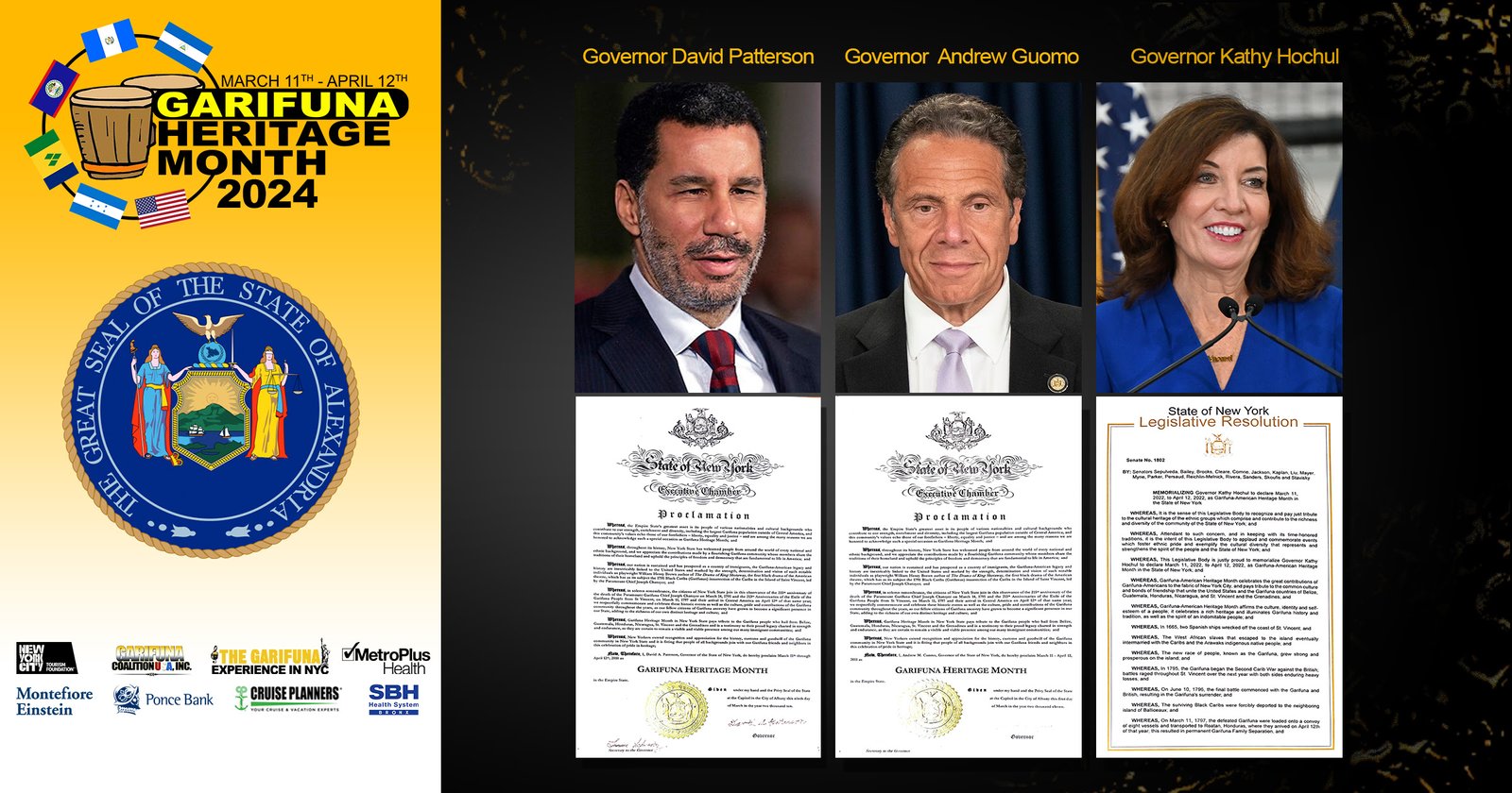 El martes 5 de abril de 2011, una delegación de más de 120 Garifunas de la ciudad de Nueva York, viajó al edificio del Capitolio en Albany para asistir a la presentación del senador Ruben Díaz, Sr. de la Resolución J 336 del Senado del Estado de Nueva York, mientras que el asambleísta Eric Stevenson presentó la Resolución K 195-2011 de la Asamblea, que conmemoro al gobernador, Andrew M. Cuomo a que declarará del 11 de marzo al 12 de abril de 2011 como el Mes de la Herencia Garifuna Americana de en el Estado de Nueva York.