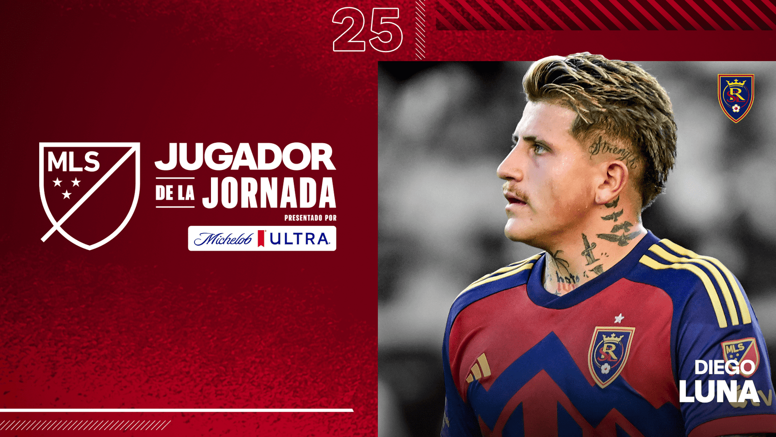 NUEVA YORK (lunes, 8 de julio, 2024) – El mediocampista de Real Salt Lake, Diego Luna fue nombrado Jugador de la Jornada de Major League Soccer presentado por Michelob Ultra correspondiente a la fecha 25 de la temporada 2024 de MLS.