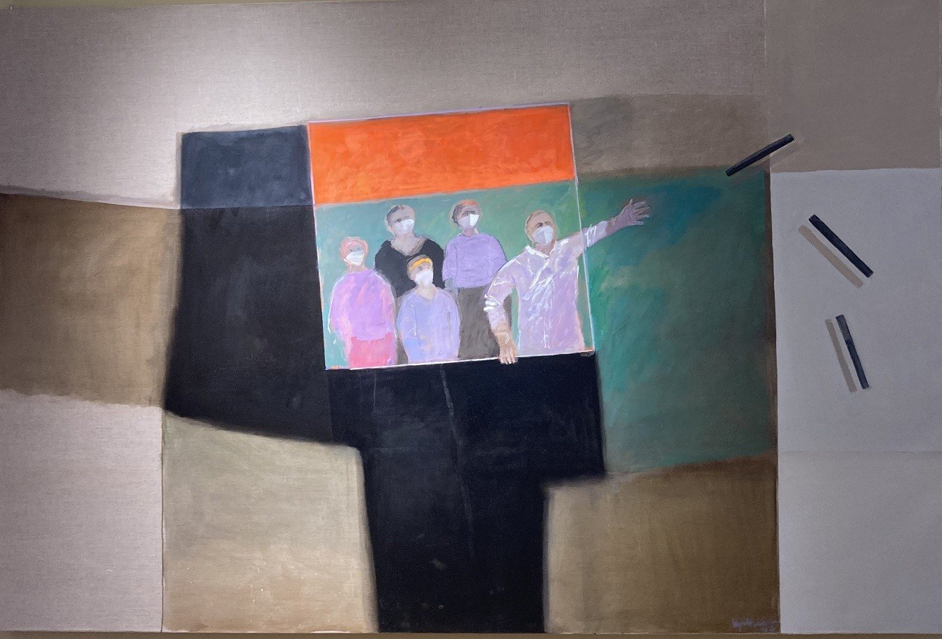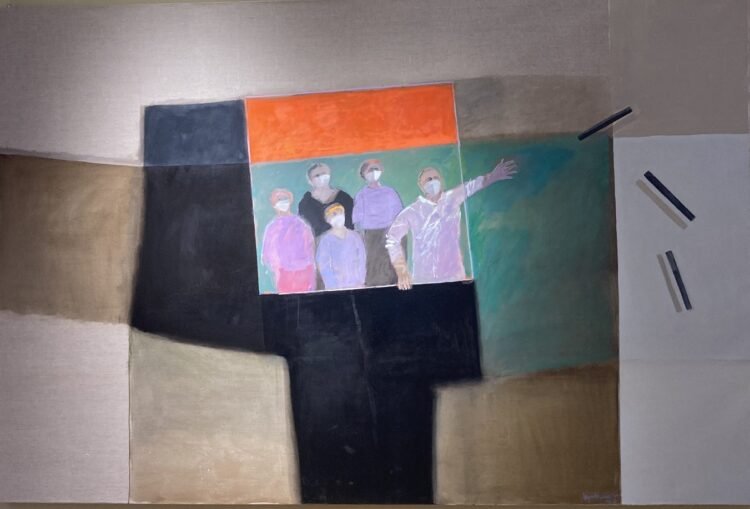 Lo instalamos en una sala del Museo con cuadros del maestro Hans Soyka y otro de los pintores Sergio Rojas, Hans Scholtbach, Marco Antonio Hughes, Carlos González, Margarita Bahn y Olga Doñas. Todos miembros de una generación que unos años antes había surgido (a decir de algunos como la más destacada de la historia de Bellas Artes de Viña del Mar). Por una mera coincidencia, en años anteriores se había aglutinado junto al maestro Hans Soyka un variado grupo de jóvenes artistas que conformaron una “agrupación” de pintores rebeldes voluntariosos, algunos visceralmente críticos, pero por sobre todo un gran talento expresivo. A ellos se sumó la rigurosa enseñanza del “gringo Soyka” y la determinante voluntad de ser artita y vivir como tal, en un tiempo al que Álvaro Donoso denominaba “la época de oro” de la Escuela de Bellas Artes de Viña del Mar”.