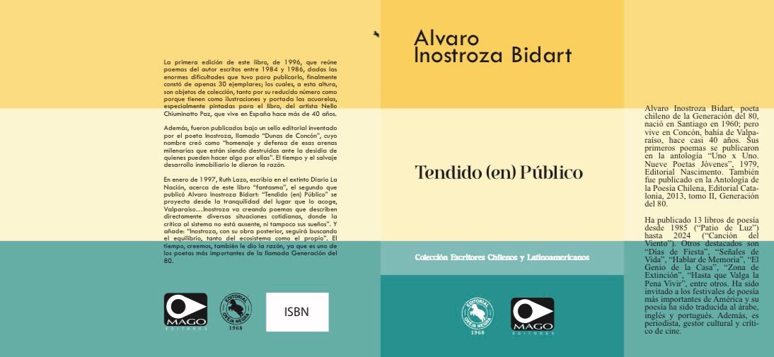 Fruto de esta colaboración ya ha visto la luz el primer título de la colección: Tendido (en) Público, del reconocido poeta chileno Álvaro Inostroza Bidart. El poemario tendrá su presentación oficial el 30 de noviembre, a las 14:00 horas, en la Plaza Feria de la Feria Internacional del Libro de Santiago (FILSA), marcando el inicio público de este ambicioso proyecto editorial binacional.