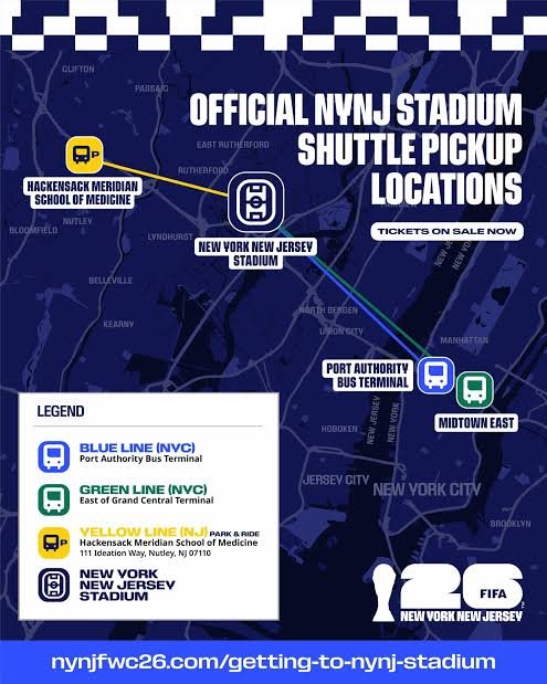 Son buses especiales dedicados al evento, organizados por NJ Transit y el comité del FIFA World Cup 2026.