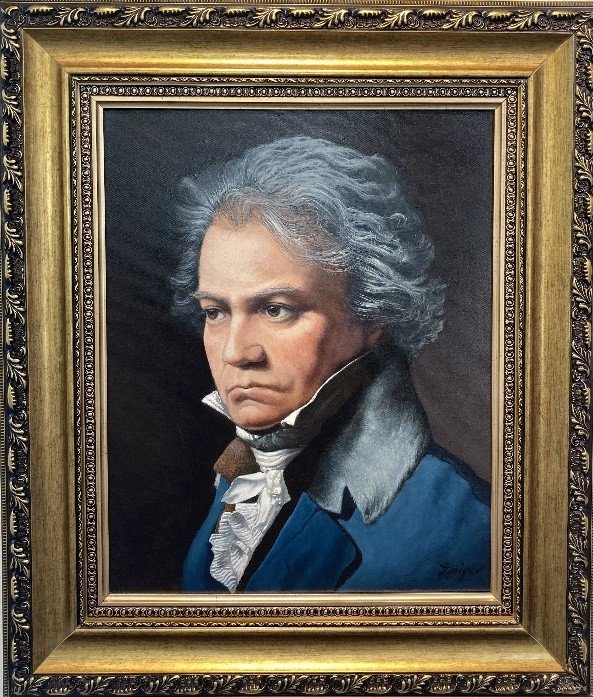 Este retrato de Beethoven, tomó al autor muchísimo tiempo realizarlo. Quiso darle vida al cuadro intentando hacer que el rostro saliera del marco, y lo logró… el juego de luz y sombra contribuyó a dar un especial realce a la magnífica obra.