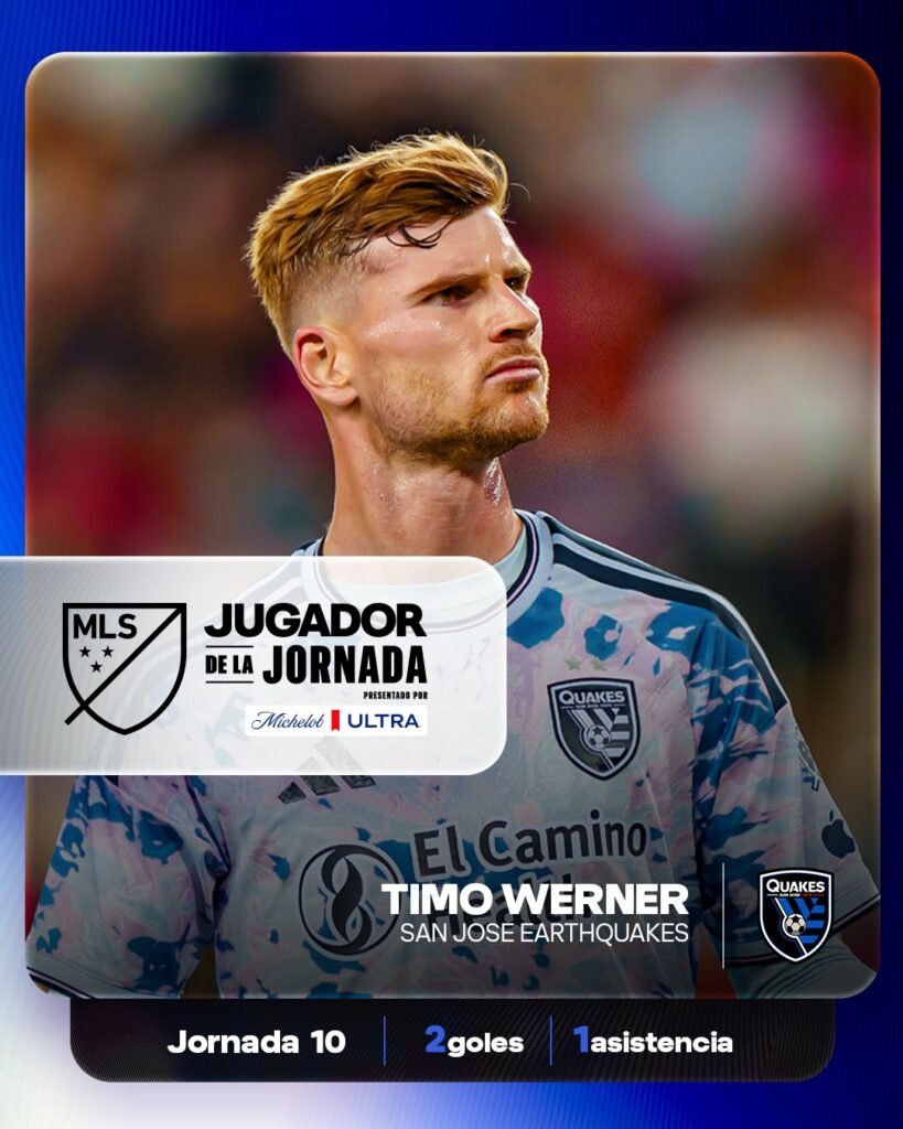 El delantero alemán Timo Werner fue elegido Jugador de la Jornada tras una actuación estelar en la que firmó dos goles y una asistencia, liderando una nueva exhibición ofensiva de San Jose. Werner fue desequilibrante, letal y absolutamente imparable, dejando claro que su impacto en la MLS está siendo devastador. Su velocidad, experiencia y capacidad para definir han elevado a San Jose a un nivel de élite, convirtiéndolo en el gran monstruo del Oeste.