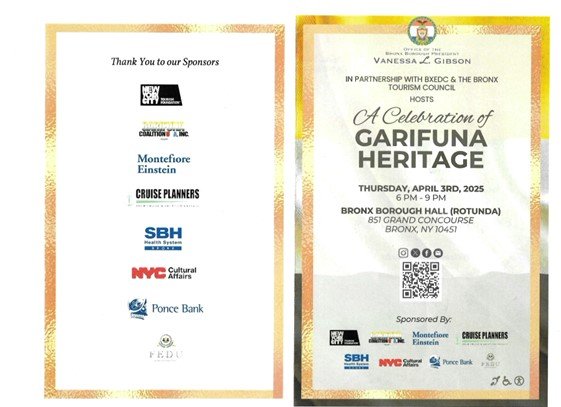 La Coalición Garífuna USA, Inc. reconoce el papel crucial desempeñado por la oficina del Presidente del Condado del Bronx para garantizar el éxito del evento. La atención al detalle, el profesionalismo y el entusiasmo genuino de su equipo por celebrar la herencia garífuna fueron muy apreciados.