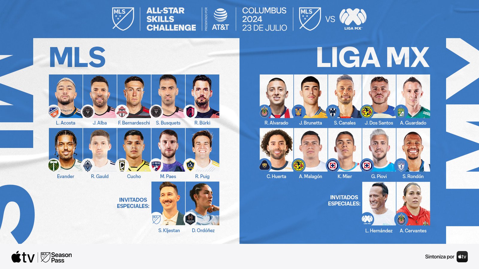 Si bien tres participantes de la nómina de la MLS tienen experiencia previa con el Skills Challenge, incluyendo el arquero de St. Louis CITY SC, Roman Bürki a igual que Acosta y Puig. Siete jugadores entre ellos Hernández, el ex defensa de la Selección Nacional de España, Jordi Alba (Inter Miami CF), el delantero y campeón de la Eurocopa Federico Bernardeschi (Toronto FC), el mediocampista y campeón de la Copa Mundial de la FIFA 2010 Sergio Busquets (Inter Miami CF), el mediocampista Evander (Portland Timbers), el mediocampista Ryan Gauld (Vancouver Whitecaps FC) y el arquero Maarten Paes (FC Dallas) se están preparando para participar en el MLS All-Star Skills Challenge presentado por AT&T por primera vez.