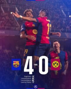 Por: Marvin Estrada – El imperioso Barcelona goleó el miércoles 4-0 al visitante Borussia Dortmund en el partido de ida de los cuartos de final de la Liga de Campeones, después de que Robert Lewandowski anotó dos goles contra su antiguo club para darle a los catalanes una ventaja considerable antes de la visita de regreso a Alemania la próxima semana.