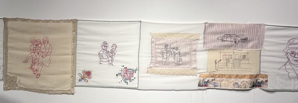A través de la costura y el bordado, los fragmentos de la historia familiar se entrelazan para formar un nuevo relato que redefine la identidad.