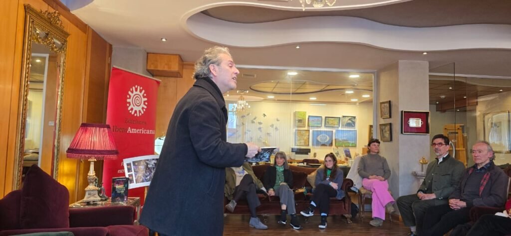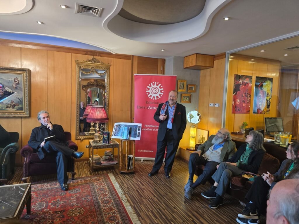 Theodoro Elssaca presentando al autor galardonado con el Premio Ediciones IberoAmericana 2025