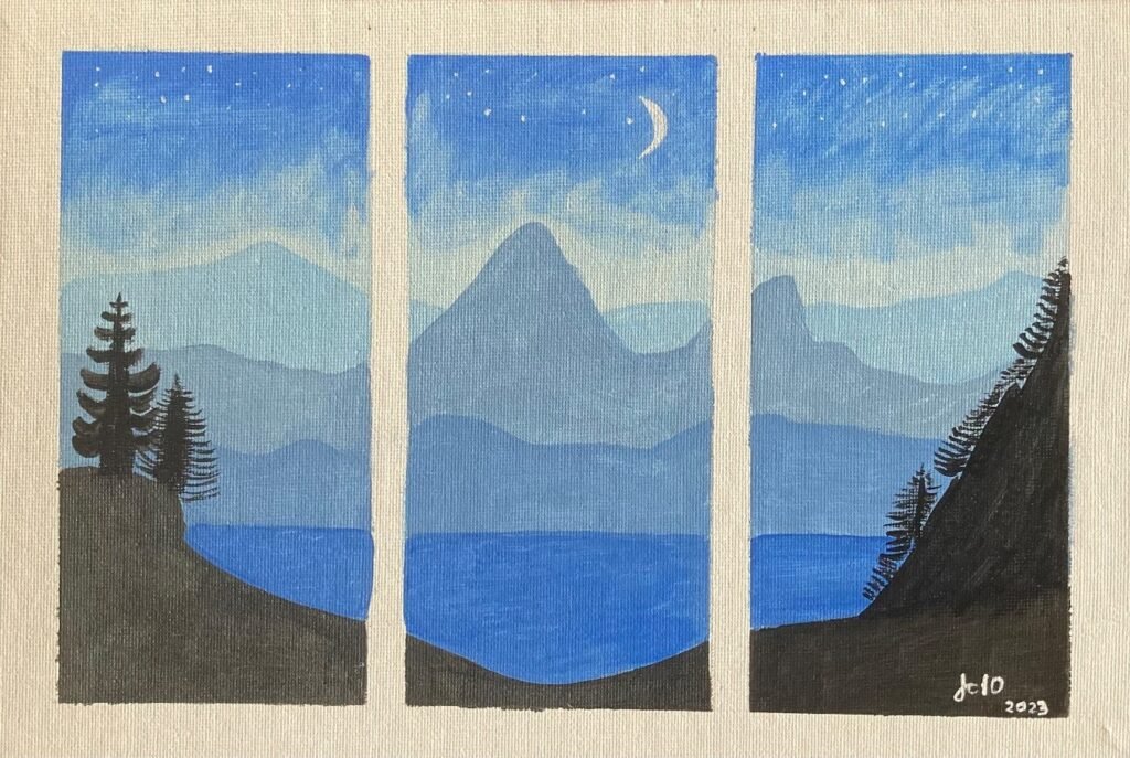 Se presentaron 18 obras hechas en acrílico sobre tela, acuarela sobre tela y acuarela sobre papel. La temática fue diversa, quizás porque aún estoy buscando mi estilo… Comencé a pintar recién la primera semana del mes de septiembre de 2023 y eso significa que tengo mucho camino por recorrer antes de tener definido un estilo que me caracterice.