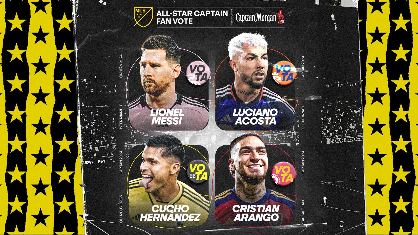 NUEVA YORK (martes, 2 de julio, 2024) – Major League Soccer anunció hoy a los cuatro finalistas para el 2024 MLS All-Star Captain Fan Vote presentado por Captain Morgan. Los finalistas seleccionados como parte del proceso de votación de los aficionados del MLS All-Star son: Luciano Acosta de FC Cincinnati, Cristian ‘Chicho’ Arango de Real Salt Lake, Juan ‘Cucho’ Hernández del Columbus Crew, y Lionel Messi de Inter Miami CF, será nombrado capitán del equipo MLS All-Star 2024.