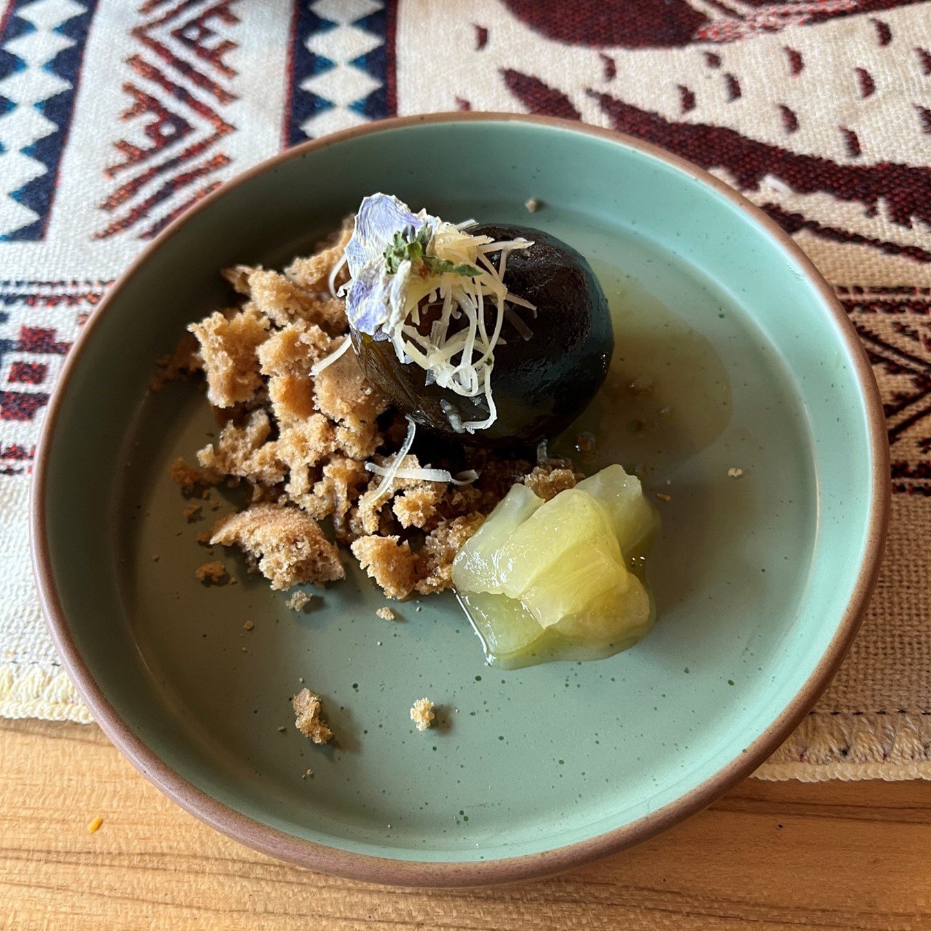 Luego, llegó el complemento obligado del plato principal, el cual es un Higo caramelizado con queso… y otros sabrosos ingredientes… realmente delicioso e imperdible.