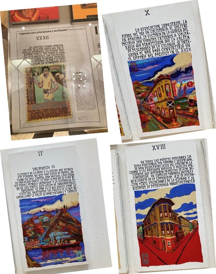 Allí, con su visión, una y otra vez, nos habla, en palabras y en color, acerca del Valparaíso contradictorio, de su historia, que ha sido puerto de Santiago, puerto Patrimonial, oceánico, global, pero también la favela del Pacífico en la que se ha transformado, por factores externos, como terremotos, la apertura del Canal de Panamá, pero también por la indolencia de los porteños y por su falta de visión.